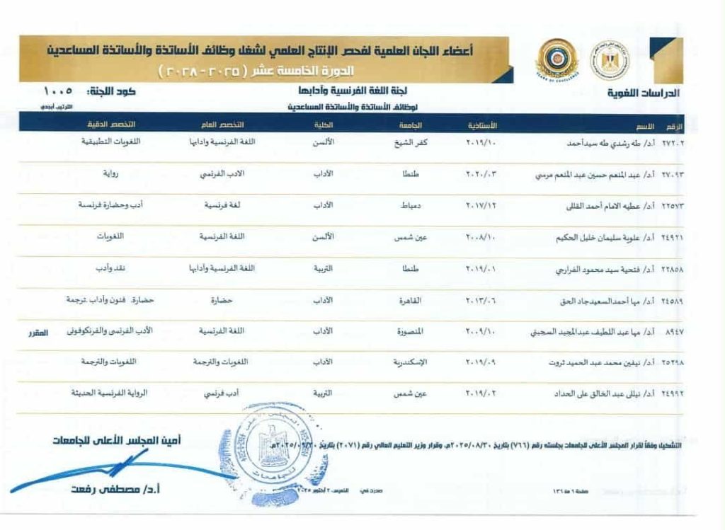 يأتي هذا الاختيار ضمن تشكيل الدورة الخامسة عشرة (2025 – 2028) بالمجلس الأعلى للجامعات المصرية، التابع لوزارة التعليم العالي والبحث العلمي.